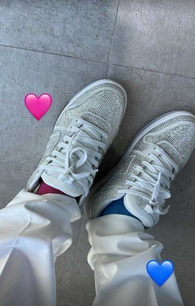 Para compor o look, Neymar usou uma meia de cada cor no chá revelação do segundo filho. Ele já é pai de um menino. Davi Lucca tem 11 anos e é fruto do relacionamento com a influenciadora Carol Dan