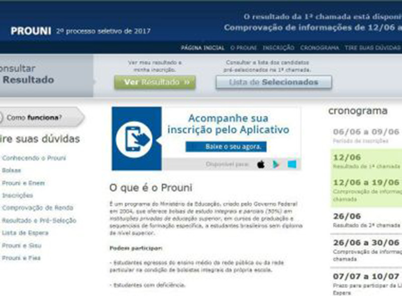 Página do ProUni | Foto: Reprodução