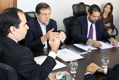 Os secretários estaduais da Educação, Walter Pinheiro, e da Administração, Edelvino Góes, se reuniram, nesta quinta-feira (07), com o procurador-chefe do Ministério Público do Trabalho (MPT), Alberto Balazeiro, para discutir a garantia do pagamentos dos prestadores de serviço da Educação, cujas empresas tiveram o contrato encerrado no último dia 30 de junho. Na reunião, que também contou com a participação dos procuradores Pacífico Rocha, Rômulo Almeida e Luís Carneiro, o MPT informou que já vai começar, nesta sexta-feita (08), uma série de reuniões de mediação com as empresas; sete já estão agendadas. Além disso, MPT e o Governo do Estado vão criar grupo de acompanhamento da aplicação da Lei Anticalote, que assegura os direitos trabalhistas e idenizatórios dos trabalhadores, que estão sendo contratados pela novas empresas licitadas pela Secretaria da Administração, para a prestação de serviços nas escolas estaduais. “Todas as empresas já receberam os valores relacionados aos serviços prestados. A Secretaria está trabalhando para garantir a normalidade das atividades nas escolas e assegurar que estes trabalhadores, que exercem um papel fundamental, sejam respeitados e tenham seus direitos garantidos”, afirma Pinheiro. Ele destacou, ainda, que “este alinhamento com o MPT é fundamental na mediação com as empresas que já saíram e com aquelas, cujos contratos estão sendo refeitos conforme a Lei Anticalote.
