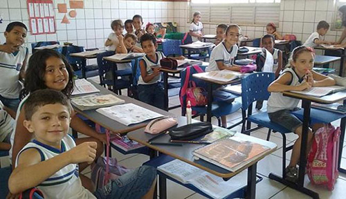Alunos do 1º ano do Colégio Professor Vespasiano Filho utilizam o material do Alfa e Beto
