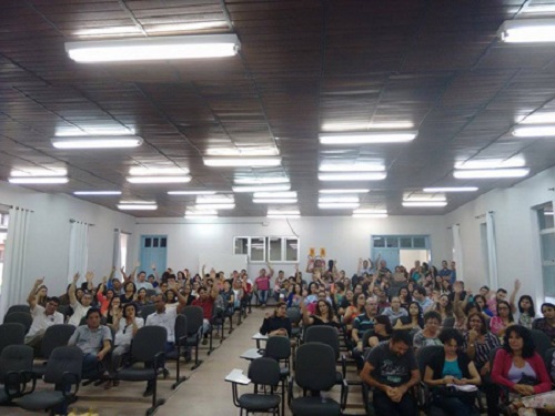 Na tarde desta quarta-feira, 20, em Vitória da Conquista, foi deflagrada greve por tempo indeterminado pelos Profissionais da Educação da rede municipal de ensino. A decisão foi tomada em assembleia, realizada na Câmara Municipal de Vereadores, em virtude de a Prefeitura Municipal mais uma vez não apresentar proposta de reformulação do plano de carreira da categoria, criando os níveis de Especialista, Mestre e Doutor. Esta mantém, de forma autoritária, a estrutura em vigor desde 2011, com apenas dois níveis: magistério e graduação. Além disso, nega a representatividade do Simmp enquanto sindicato dos Profissionais da Educação. A pauta de reivindicações da campanha salarial, encaminhada ao governo desde abril deste ano, começou a ser discutida na tarde de ontem e se estendeu até a manhã desta quarta-feira, 20. Entretanto, o debate foi suspenso pelo governo municipal, que se recusou a apresentar proposta de reformulação da carreira e debater as questões referentes aos monitores, que são também Profissionais da Educação. “Nossa briga será acirrada, porque desde que o Governo achatou com a carreira do magistério pela primeira vez, congelando três níveis em salário mínimo, em 2002, que a categoria vem lutando pela reforma do plano de carreira, reforma essa que deve contemplar a formação e o tempo de serviço. No mais, em 2013, o SIMMP reformulou o estatuto da entidade deixando de ser sindicato dos professores e tornando-se dos profissionais da educação, da qual a categoria não abre mão da representatividade”, explicou a presidente, Geanne Oliveira. As aulas deverão ser suspensas a partir da próxima segunda-feira, sendo que nestas quinta e sexta-feira, os profissionais da educação estarão nas escolas informando os pais e alunos sobre a greve. “O governo tem até a próxima sexta-feira para rever o seu posicionamento, apresentando uma proposta concreta de reforma da carreira, criando os níveis proposto pela categoria. Também, manifestar o respeito à representatividade do Simmp. Caso isso não aconteça, entraremos de fato no movimento. Inclusive, realizaremos nova assembleia com o grupo para decidir a agenda de atividades”, finalizou Geanne Oliveira. (As informações são do SIMMP).