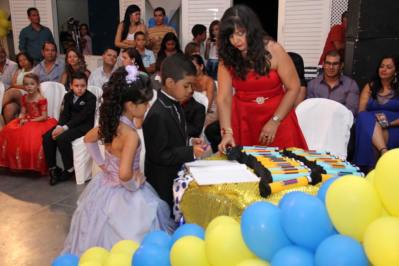 Aconteceu ontem (07), no clube social de Brumado, a formatura da turma da alfabetização da Artinfância. Com a presença maciça dos pais e familiares dos ‘pequeninos’ formandos, o clube social ficou repleto. Como de costume, a decoração e a organização do evento supervisionada pela equipe Artinfância, dispensa comentários! Contudo, o que ficou marcado na formatura da Artinfância foi a emoção que tomou conta de todos os presentes, um misto de gratidão e alegria podia ser visto em cada olhinho brilhando de cada pai presente, que aumentou ainda mais quando algumas professoras foram homenageadas pelos os formandos, aí não teve quem não se emocionasse! A diretora Regina Célia em seu discurso destacou a importância dos professores na vida e na formação do caráter de cada cidadão, salientou ainda, a celebração dos 20 anos de fundação da Artinfância, onde fez questão de enfatizar que os desafios enfrentados são enormes, mas, o amor à educação é maior ainda, e finalizou agradecendo a todos os presentes pela maravilhosa noite compartilhada com todos.