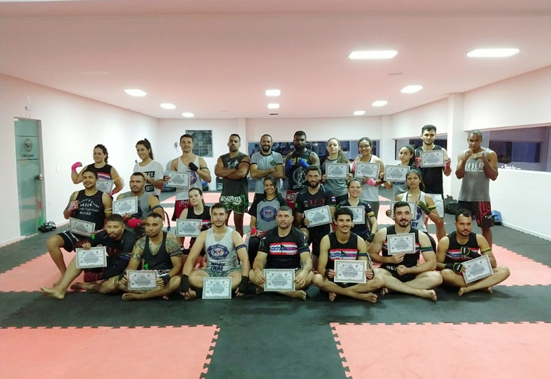 Os alunos do Centro de Treinamento Team Ribeiro CTTR, foram acompanhados do professor de Muay Thai Fabiano Ribeiro, que tem a graduação: Kruang Preto ponteira branca.