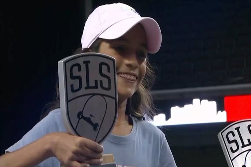 A pequena Rayssa Leal, conhecida como 'Fadinha', proporcionou um momento histórico para o skate brasileiro na noite desse domingo, em Los Angeles. A maranhense de apenas 11 anos conquistou pela primeira vez uma etapa da SLS (Mundial de Skate Street), se tornando a mais jovem atleta a conseguir a façanha. De quebra, a noite ainda foi de dobradinha brasileira na competição. Em segundo lugar ficou a paulista Pâmela Rosa. Outra brasileira de peso na disputa foi Letícia Bufoni, tetracampeã mundial. Ela terminou a final em sexto. A etapa americana conta pontos para o ranking olímpico. Rayssa disputou uma etapa do maior campeonato do mundo de skate na modalidade “street”, apenas pela terceira vez. Na grande final, disputadíssima até a última manobra, a menina acertou todas as suas cinco tentativas de manobras (4.8 / 5.4 / 7.0 / 6.1 / 4.7) e somando as maiores conseguiu terminar na primeira colocação. - Nossa, tô sem palavras de poder na minha terceira Street League estar no pódio com as minhas amigas que eu me inspiro muito. Pra mim, tô sem palavras. Esse troféu foi para o meu irmão - disse Rayssa após a conquista. Membro da seleção brasileira, a skatista é um dos destaques da modalidade no país. E sua fase é espetacular. Esse ano, ela venceu o Far’N High, na França, e ainda foi bronze na Street League Skateboarding (SLS), em Londres. A atleta ficou conhecida como "Fadinha do skate" por andar vestida de fada com apenas 7 anos. A grande meta para 2020 são os Jogos Olímpicos de Tóquio.