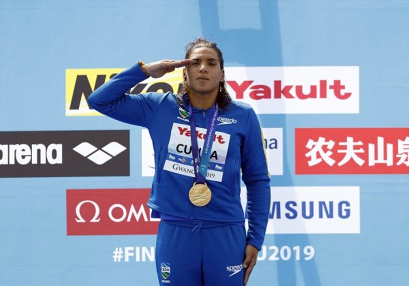 A nadadora baiana Ana Marcela Cunha conquistou seu segundo ouro no Mundial de Esportes Aquáticos da Coreia do Sul ao vencer a prova de 25 km na maratona aquática, nesta sexta-feira (19). A atleta fechou a prova no tempo de 5h08min03s. Com a conquista, Ana Marcela se tornou tetracampeã na modalidade — ela conquistou o mesmo título nos mundiais de Xangai, em 2011; Kasan, em 2015; e Budapeste, em 2017. Na prova dos 25 km, a medalha de prata ficou com a alemã Finnia Wunram, que fez o tempo de 5h08min11s, enquanto o bronze foi da francesa Lara Grangeon, com 5h08min21s. Há três dias, na terça (dia 16 no horário de Brasília, manhã de quarta-feira, 17, no país asiático) Ana Marcela conquistou a medalha de ouro na prova dos 5 km.