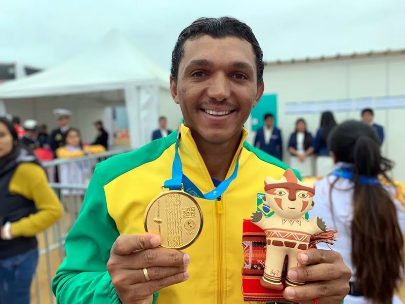 O baiano Isaquias Queiroz conquistou nesta segunda-feira (29) sua primeira medalha nos Jogos Pan-Americanos de Lima 2019. O atleta venceu a final mais esperada da canoagem velocidade, o C1 1.000m, e colocou a medalha de ouro no peito. Vale destacar que Isaquias não teve como adversário Jose Ramon Pelier Cordova, principal atleta de Cuba na modalidade. Ele está concentrado para o Mundial deste ano, que é classificatório para Olimpíada. A medalha foi a segunda para o Brasil nesta manhã. Na versão desta prova no caiaque, o K1 1.000m, Vagner Souta comemorou a de bronze.