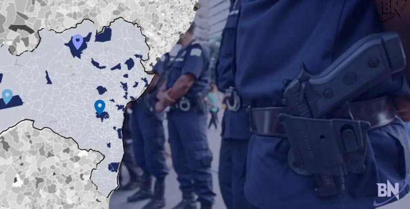 Mapa da Bahia ao lado agente armado | Foto: Ronne Oliveira / Bahia Notícias