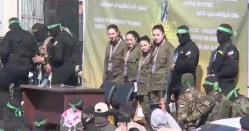A soldado israelense, Agam Berger, 20, vestindo um uniforme verde-oliva, foi conduzida por um beco estreito entre prédios danificados e sobre pilhas de escombros em Jabalia, no norte de Gaza, antes de ser entregue à Cruz Vermelha. Poucos minutos depois, o Exército israelense confirmou que ela estava sob sua custódia. No momento em que foi sequestrada, ela cumpria serviço militar perto de Gaza.