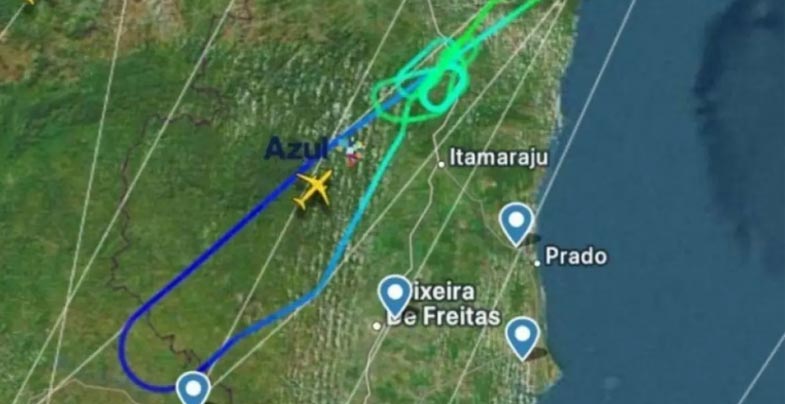 Dados da plataforma Flightradar24 indicam que o avião permaneceu sobrevoando a região antes do pouso, realizando voltas para a queima de combustível, procedimento padrão utilizado para reduzir o peso da aeronave em situações não previstas, garantindo condições seguras para o retorno.