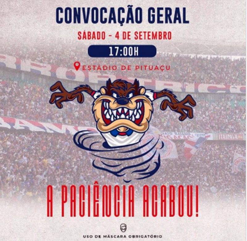 Através do Instagram, a torcida publicou em sua página oficial que a manifestação está marcada para acontecer no próximo sábado (4), a partir das 17h, no estádio de Pituaçu.