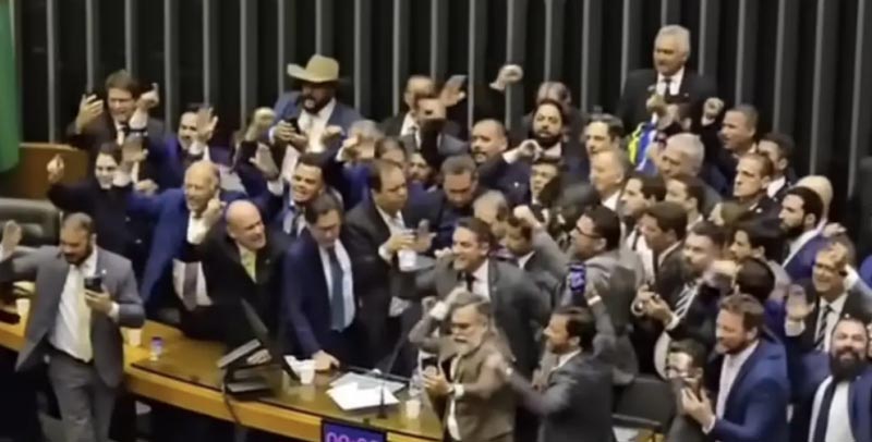 Quando conseguiu abrir a sessão, entre gritos de "anistia já" e "sem anistia", Motta discursou por cerca de dez minutos e, em seguida, encerrou a sessão.